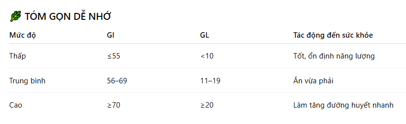 GI thấp = Đường huyết ổn định → năng lượng bền, cơ thể càng khỏe.