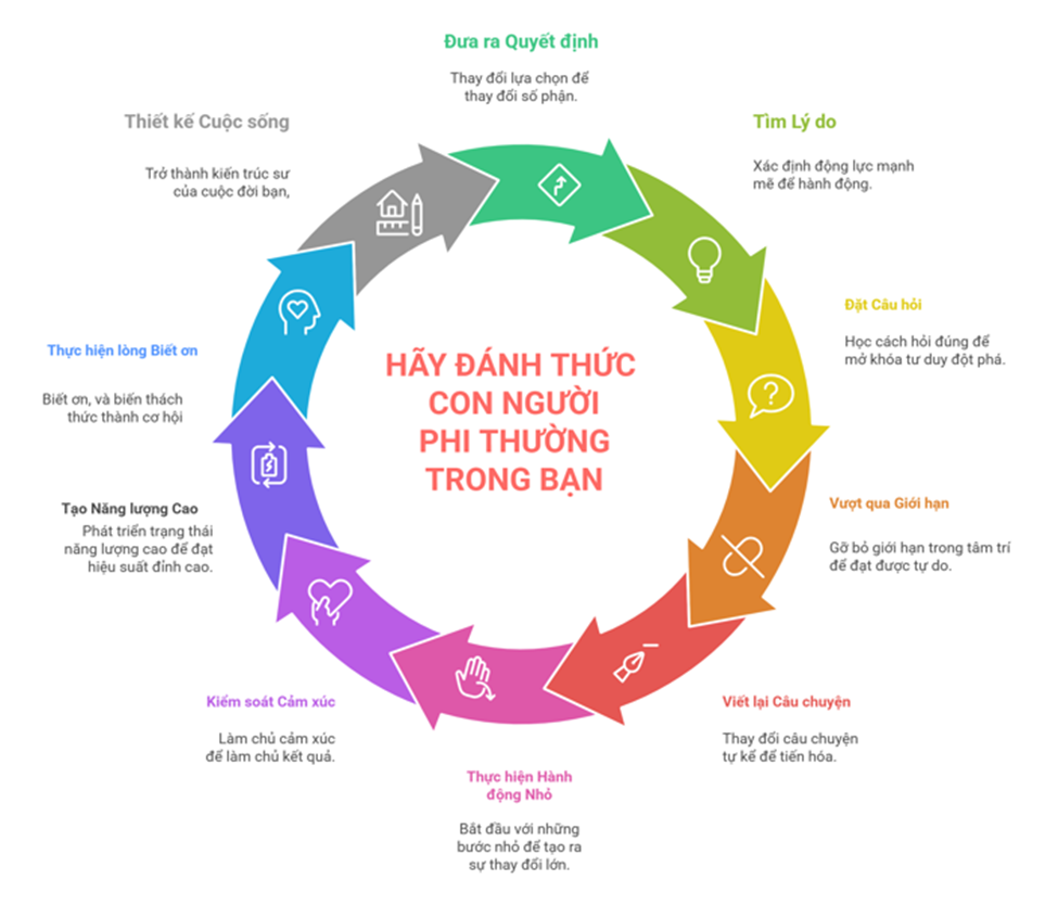 Mỗi người chúng ta đều mang trong mình một phiên bản phi thường – nhưng phần lớn không bao giờ đánh thức nó. Cuộc sống không thay đổi bằng may mắn, mà thay đổi khi ta dám nhìn lại chính mình, đặt ra những câu hỏi sâu sắc và hành động mạnh mẽ. Tony Robbins không nói làm thế nào để thành công tức thời mà giúp bạn thấu hiểu cách vận hành của con người từ bên trong, để bạn có thể làm chủ cảm xúc, tư duy và cuộc đời.