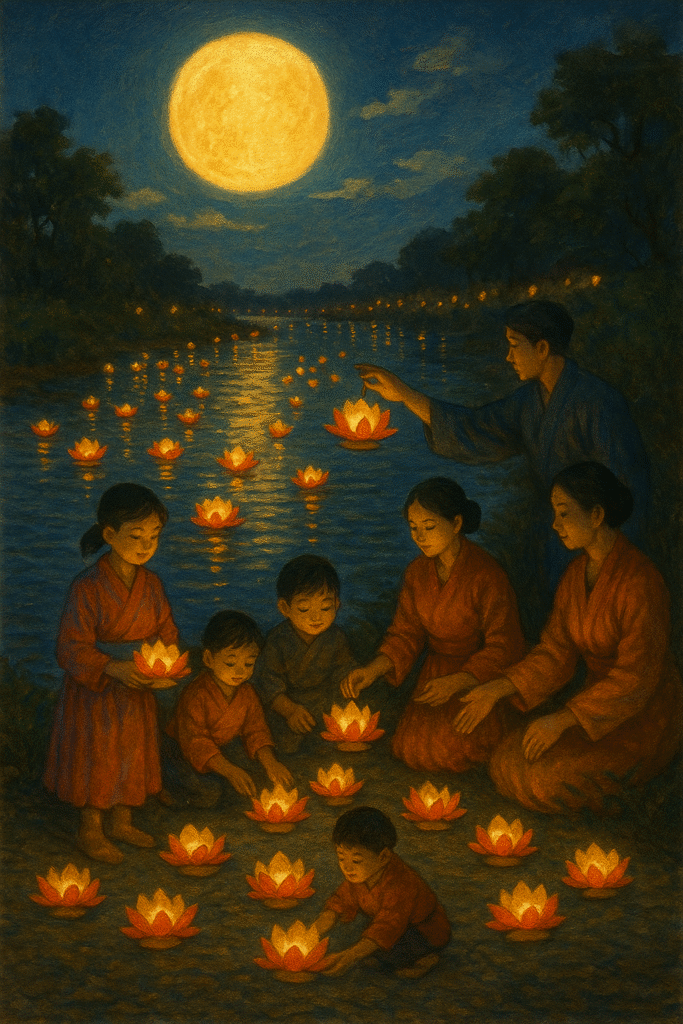 🌕 Thả đèn hoa đăng (ở một số nơi): Gửi gắm ước nguyện bình an, hạnh phúc.